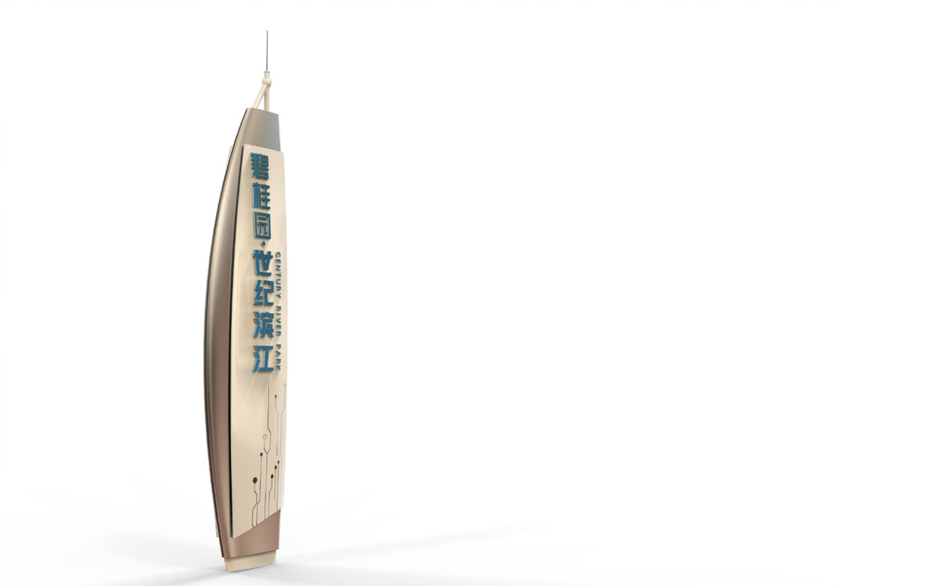 碧桂園·世紀濱江總占地約123畝,總建筑面積35萬㎡,世紀濱江標識設計以“濱江生態·花園辦公”概念為藍本,打造灣區創新門戶,佛山首個濱江產融旗艦綜合體。地產標識設計制作范圍涵蓋獨棟總部、濱江寫字樓、創變SOHO、活力街區、江畔美宅5大業態、打打造集“大企業展廳、智能科技體驗中心、智能總裁駕駛艙、科技交流中心、創新科技服務中心、科技孵化加速中心”等功能于一體的企業科技創新會客廳,鑄造佛山科技創新的新名片,推動佛山創新智造產業發展。標識設計構思以:濱江生態與科技結合,金屬質感樹干造型+圍邊樹葉,指示內容印于樹葉上,簡潔金屬流線型線條,結合濱水靈動+科技硬朗質感。