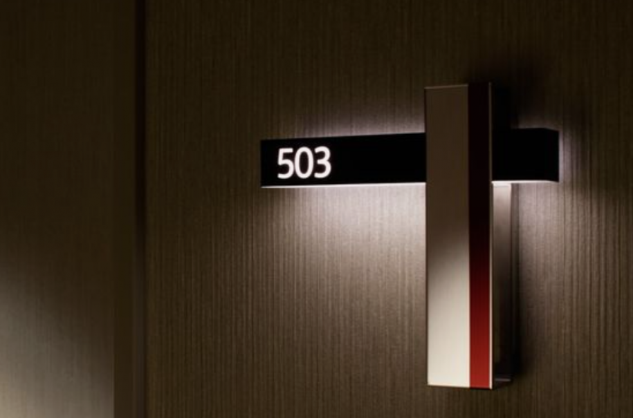 酒店門(mén)牌號(hào)標(biāo)識(shí)設(shè)計(jì)的創(chuàng)意,房號(hào)與門(mén)牌號(hào)的結(jié)合點(diǎn),這個(gè)是一個(gè)很貼切的設(shè)計(jì)手法,還可以把門(mén)禁系統(tǒng)結(jié)合到當(dāng)中去,這是我們最重要的一個(gè)環(huán)節(jié)。