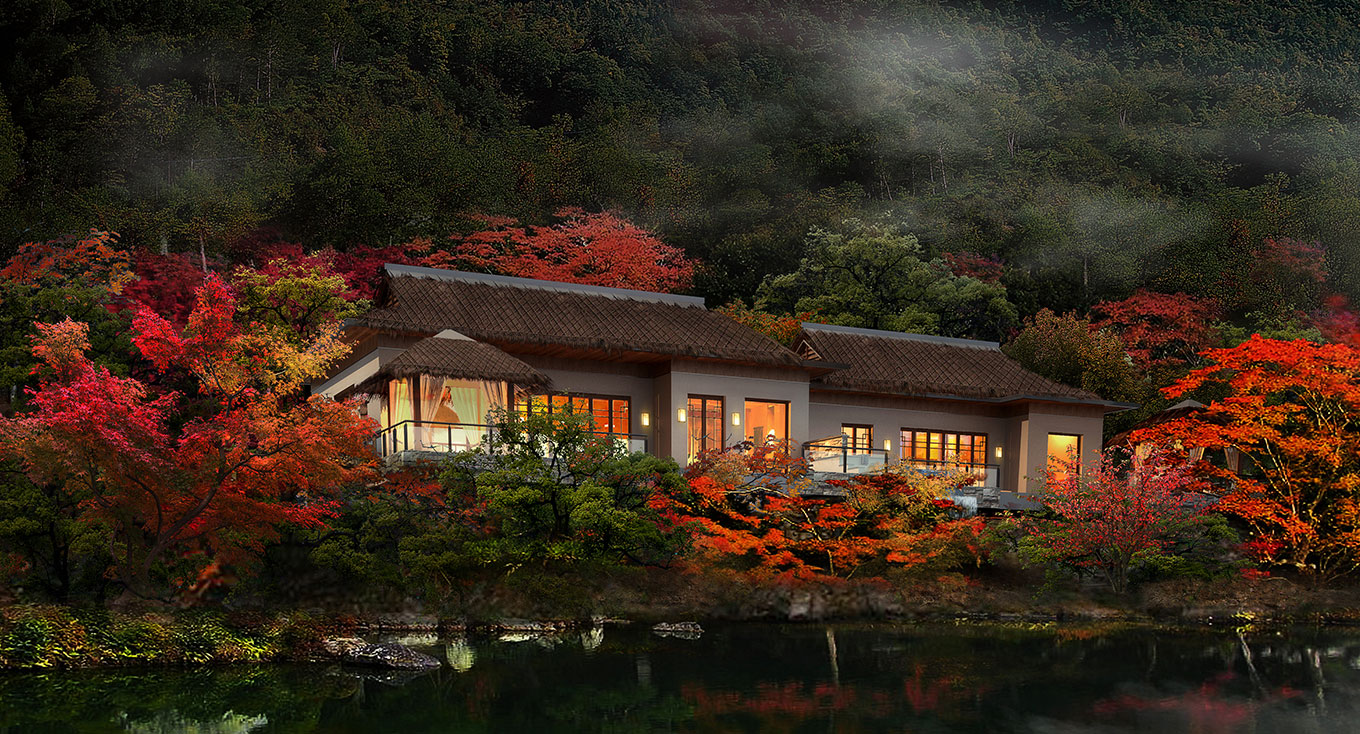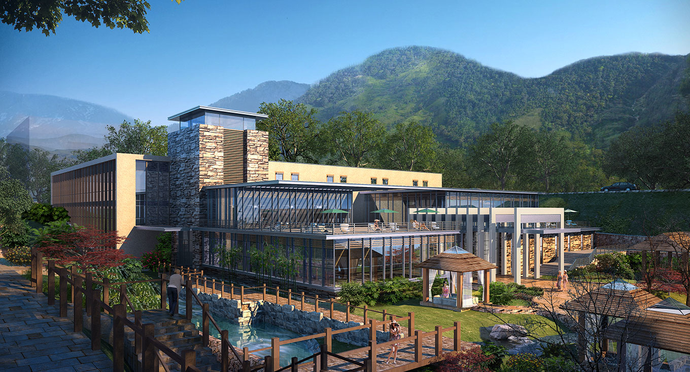 橫店影視城精心打造的花木山莊溫泉山莊標識設計,致力于為游客提供寧靜自然的天體溫泉、溫馨周到的高端體檢、健康美味的食療膳食、其樂融融的家庭娛樂、精致完善的精品客房、湖光山色的浪漫美景,為休閑橫店注入輕松的一筆。