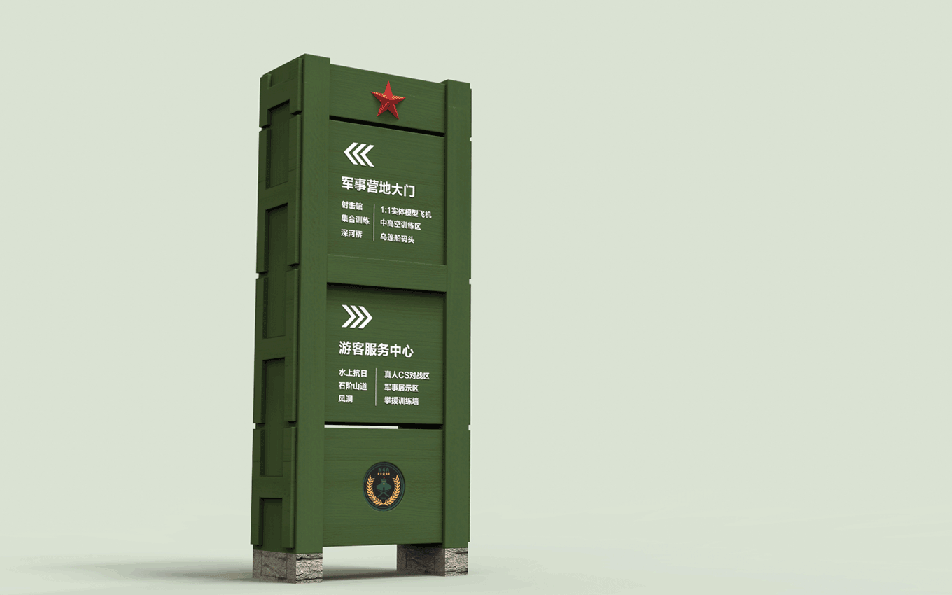 軍事訓練營景區音響設計,以軍事綠色為主題導視系統設計創意公司
