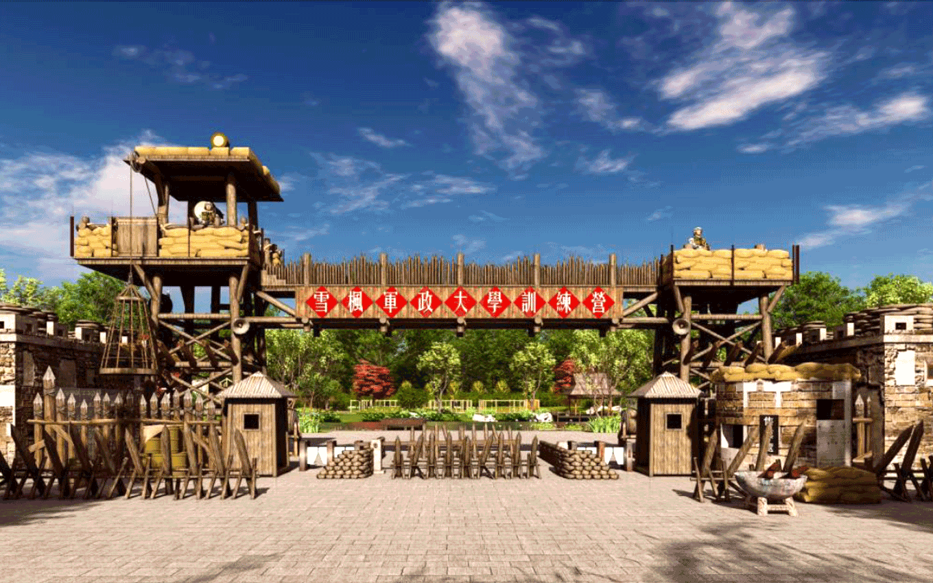 大王莊軍事訓練營景區項目位于泗洪縣半城鎮大王莊,工程占地面積約為105畝,主要建設內容包括:景觀綠化、水系、鋪裝路面、景觀小品、房屋建筑、園林配套設施、拓展訓練設施等,工程計劃總投資約6300萬元訓練營品牌設計及導視系統設計由人和時代CRT設計集團完成,整體以軍事元素為設計基礎,結合現代化的設計感觀,讓設計年輕化,體現軍事的特點。