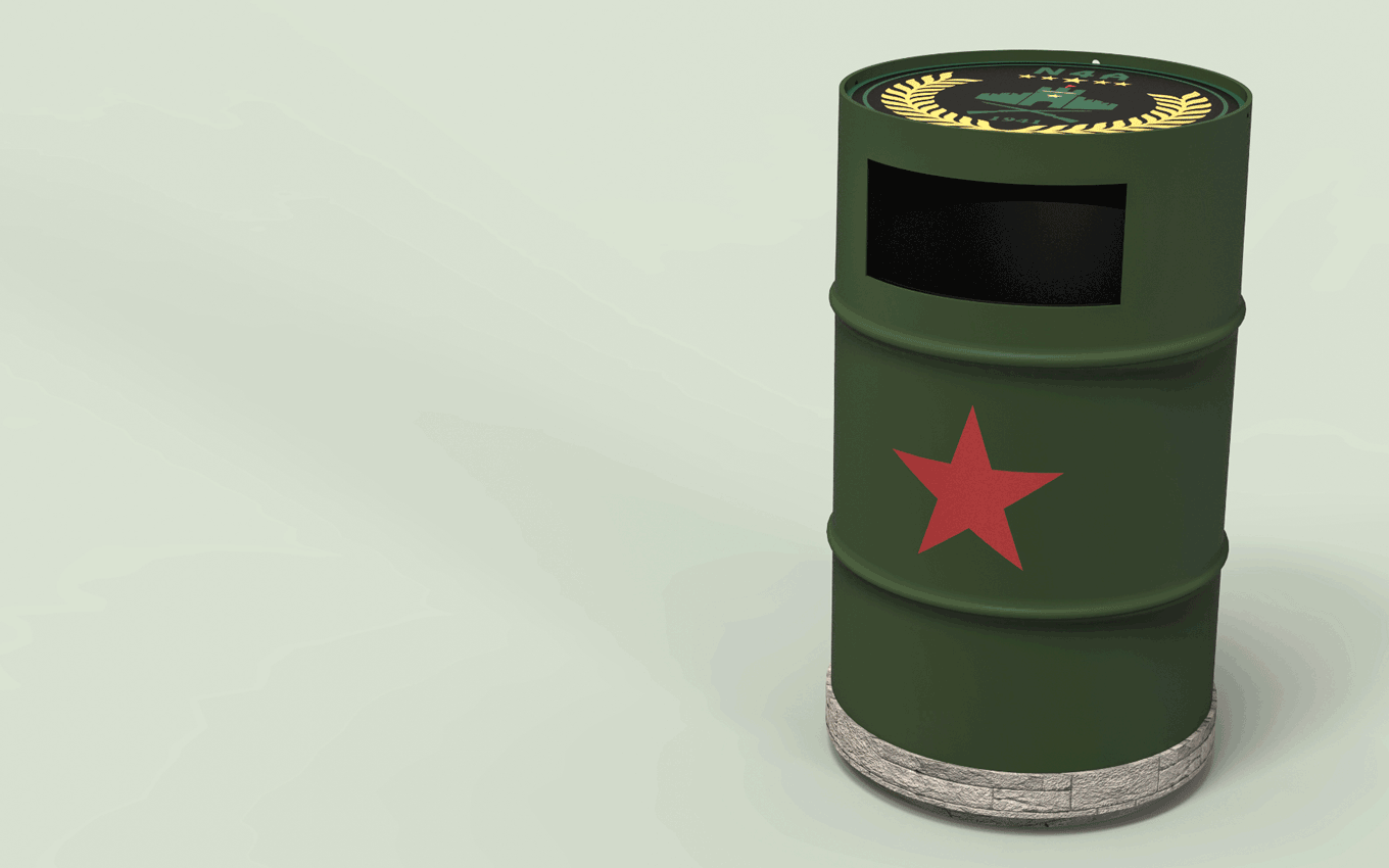 軍事垃圾桶創意設計,軍工的品牌創意。