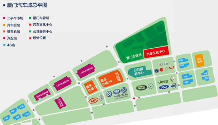 廈門汽車城目前是一邊園區各4S店、二手車登記服務中心等項目正常對外營業,廈門汽車城標識設計,一邊是公共服務中心及其他 4S店正處于施工期以及文化中心將要二次裝修施工和對外招商中,廈門車管所裝修收尾階段,營業項目和施工項目相互交叉,造成園區環境凌亂,商業氛圍較差的現狀。