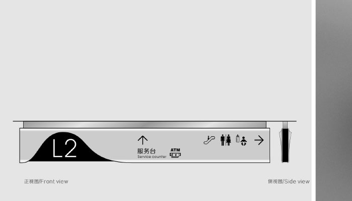 在這里商場收銀臺表示需要做得明顯,然后在高度上有一定要求,我們可以在很遠的地方就能看到這個圖標。通常收銀的位置都會在過道上,然后我們在每個商鋪都要很明顯的告訴客人收銀臺的位置。