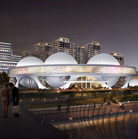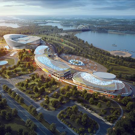 上述五個(gè)子地塊項(xiàng)目在空間上通過二層架空平臺連成一個(gè)整體,營造人、車分流動(dòng)線并創(chuàng)造大型戶外公共休閑空間!